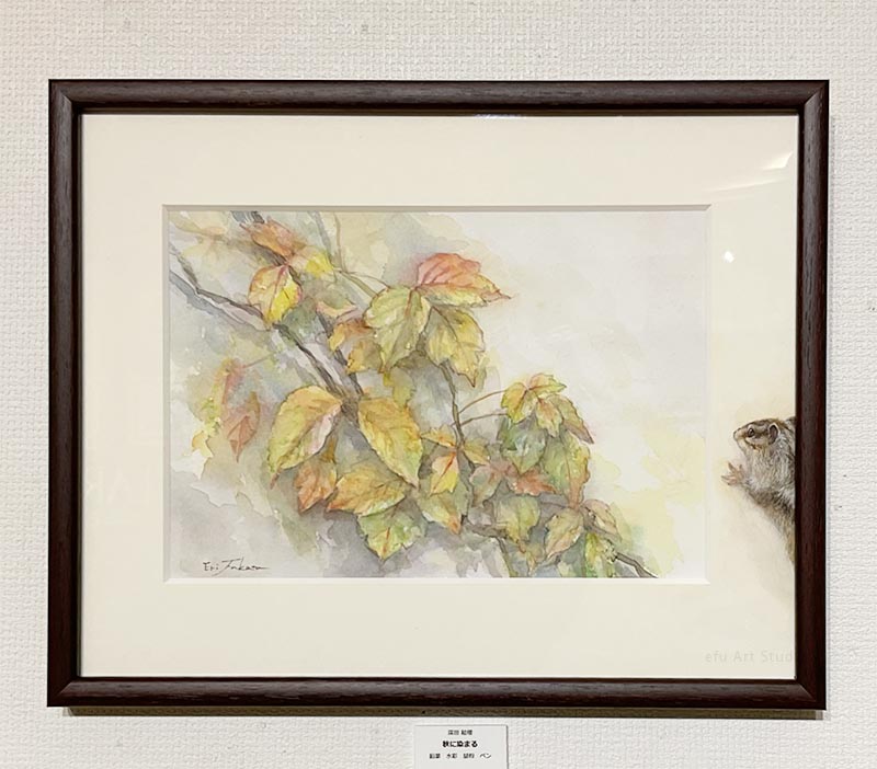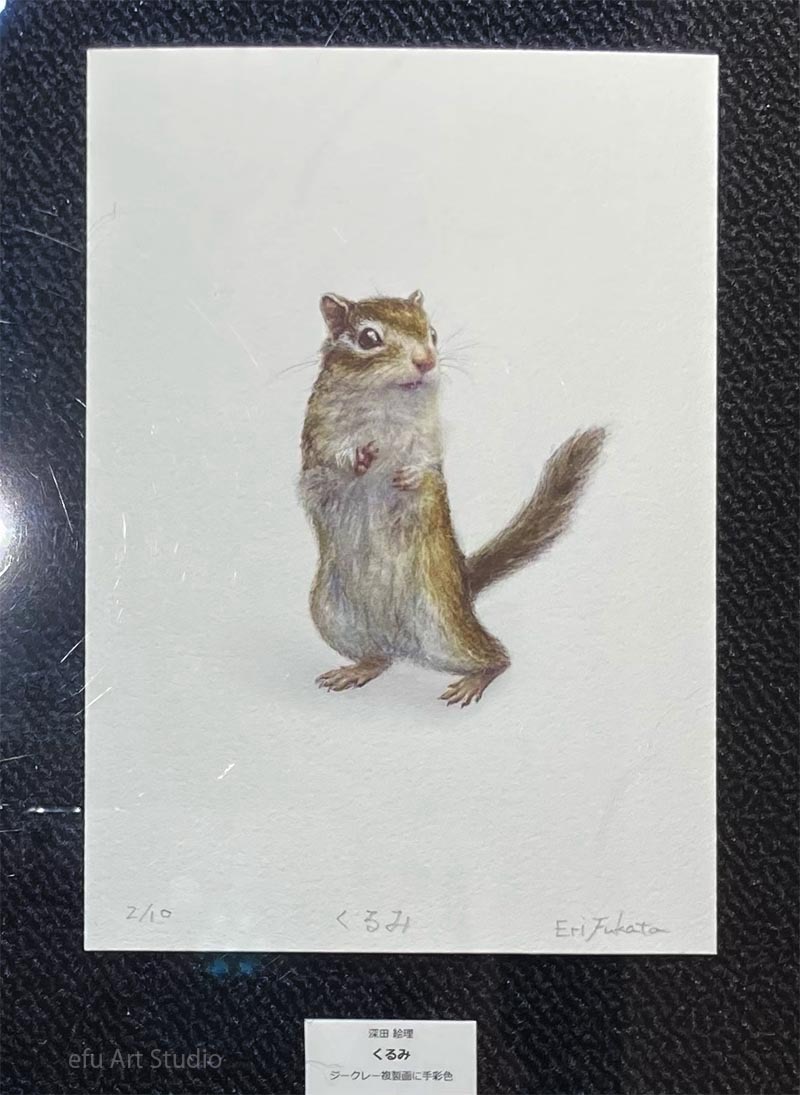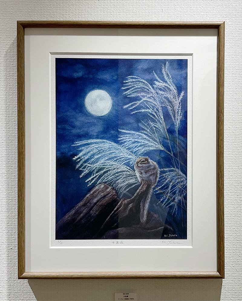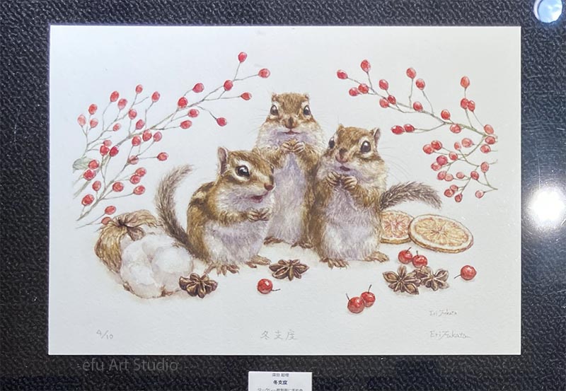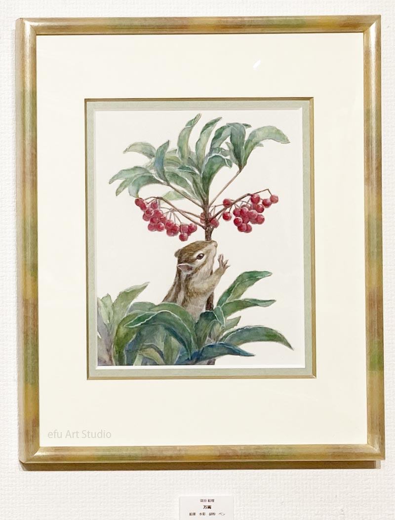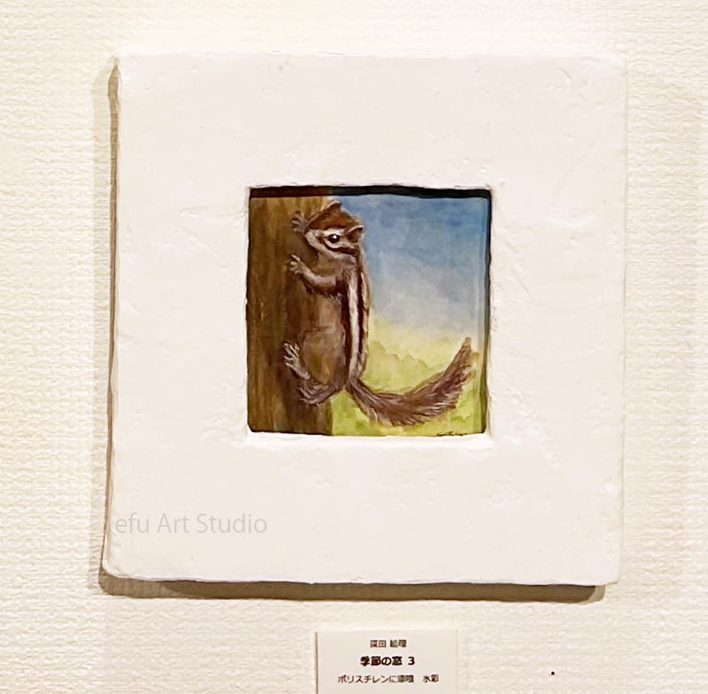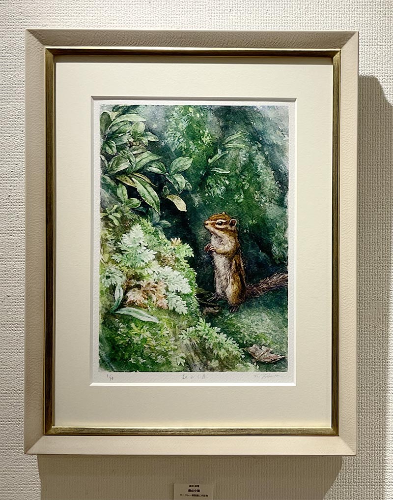リスを描く作家、深田絵理は動植物を日本画や水彩画で描き毎年個展を開催。