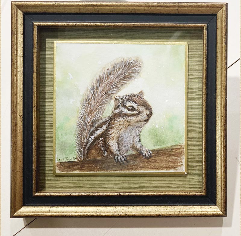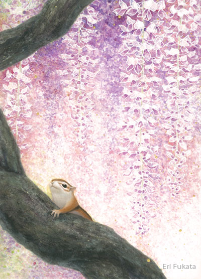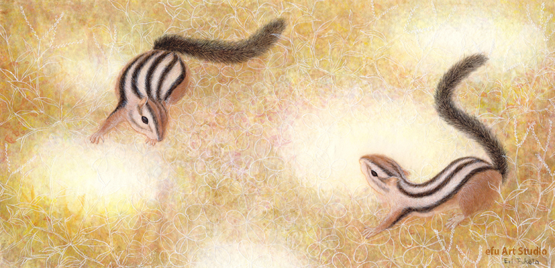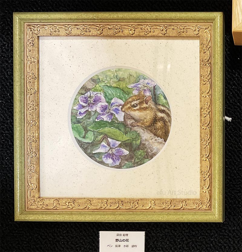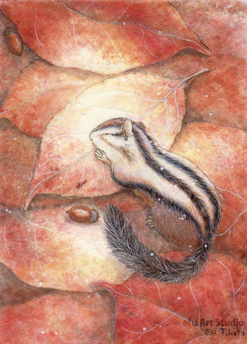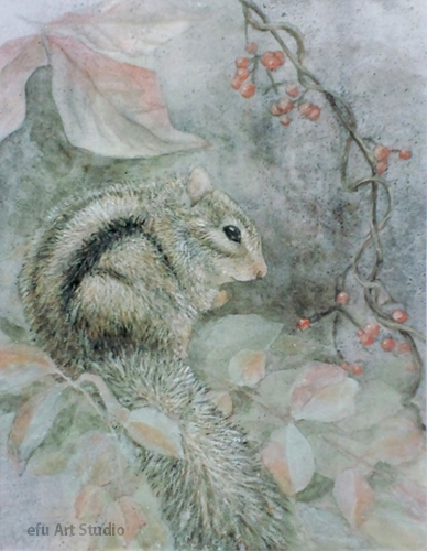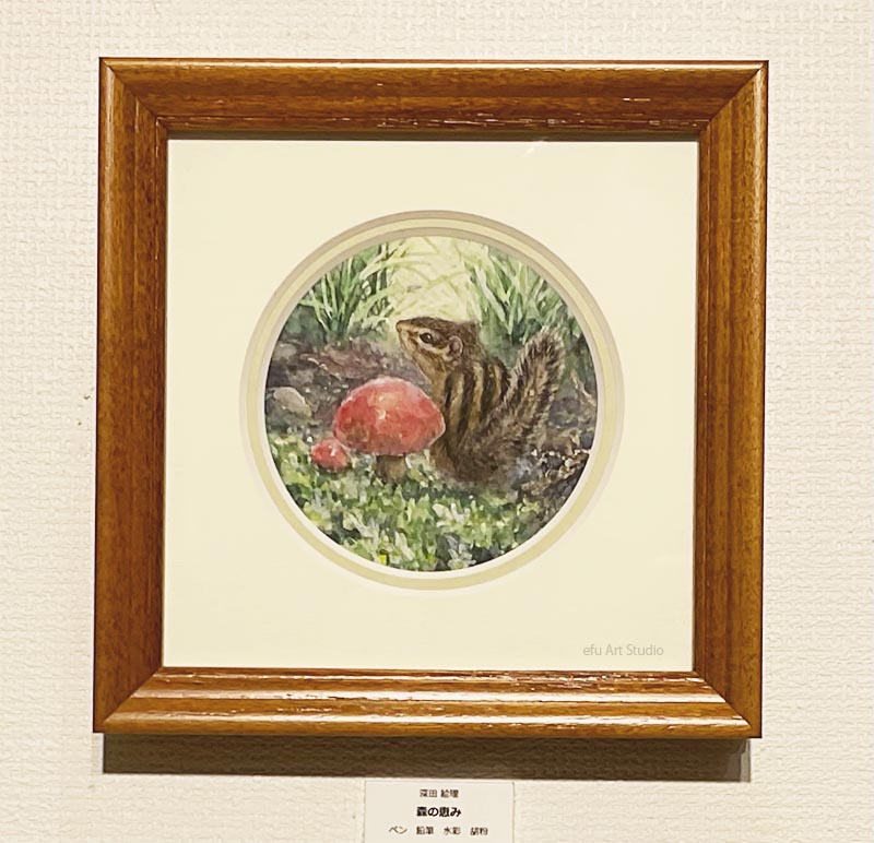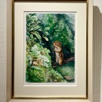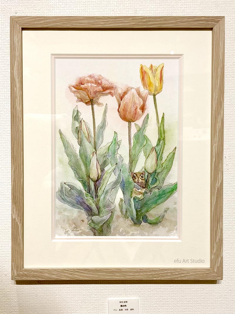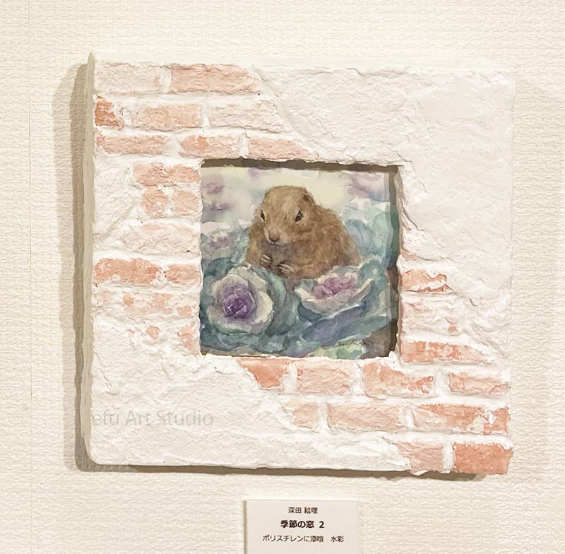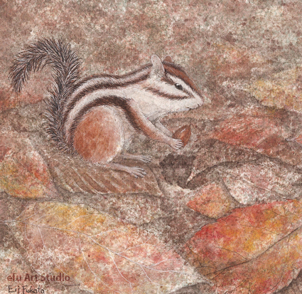 リスを描く作家、深田絵理は動植物を日本画や水彩画で描き毎年個展を開催。