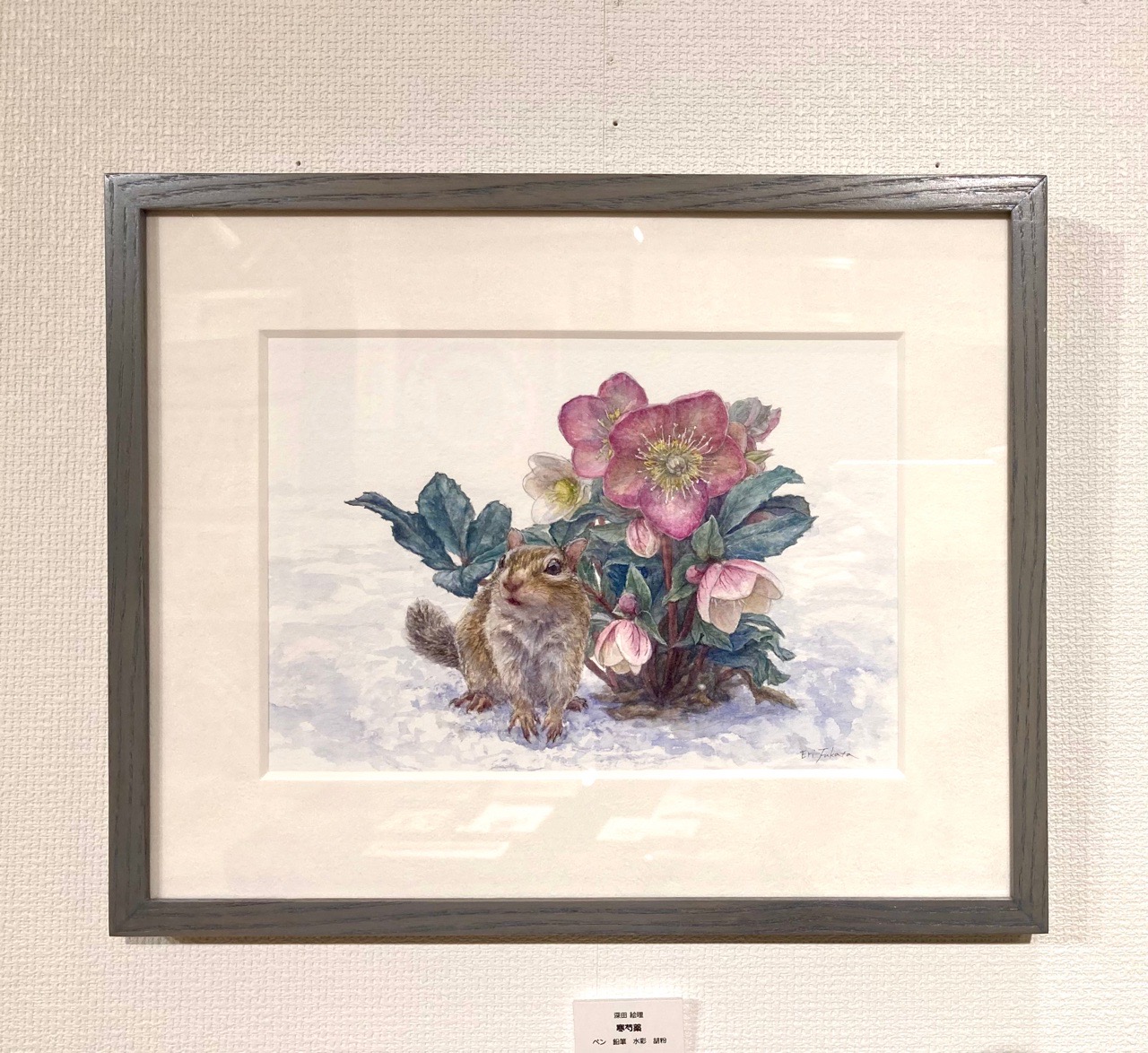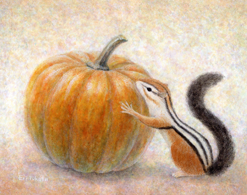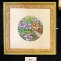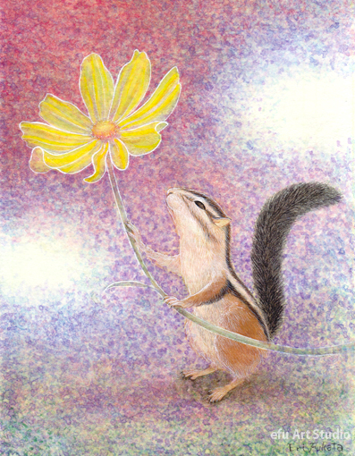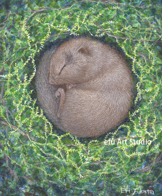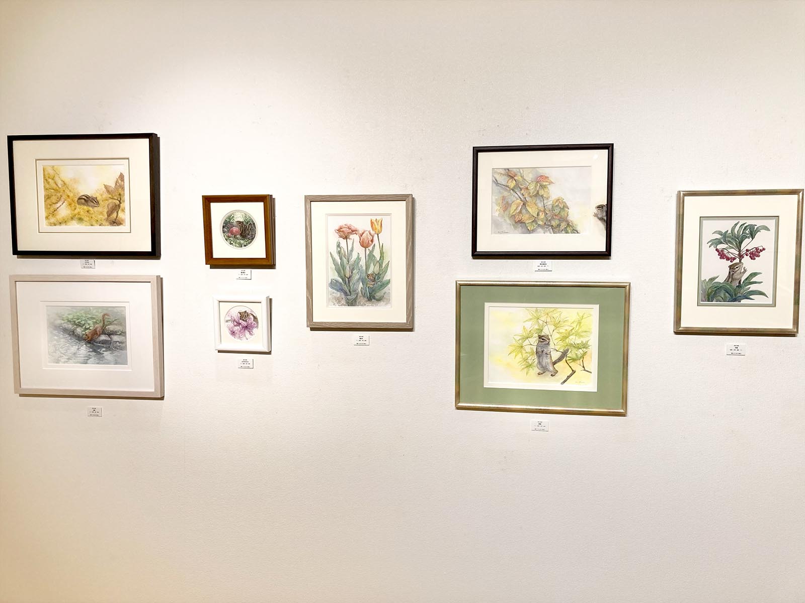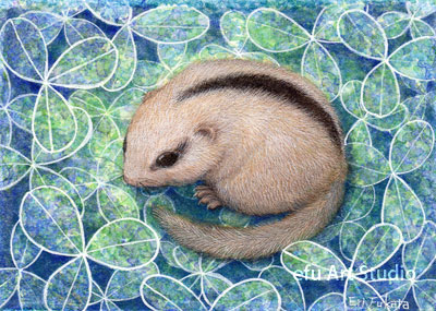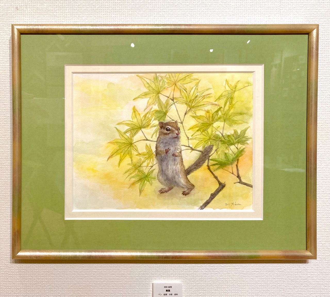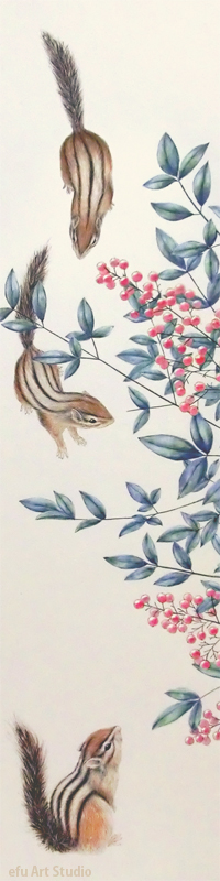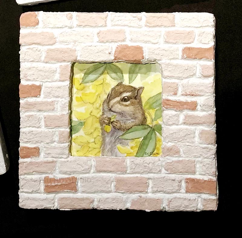 リスを描く作家、深田絵理は動植物を日本画や水彩画で描き毎年個展を開催。